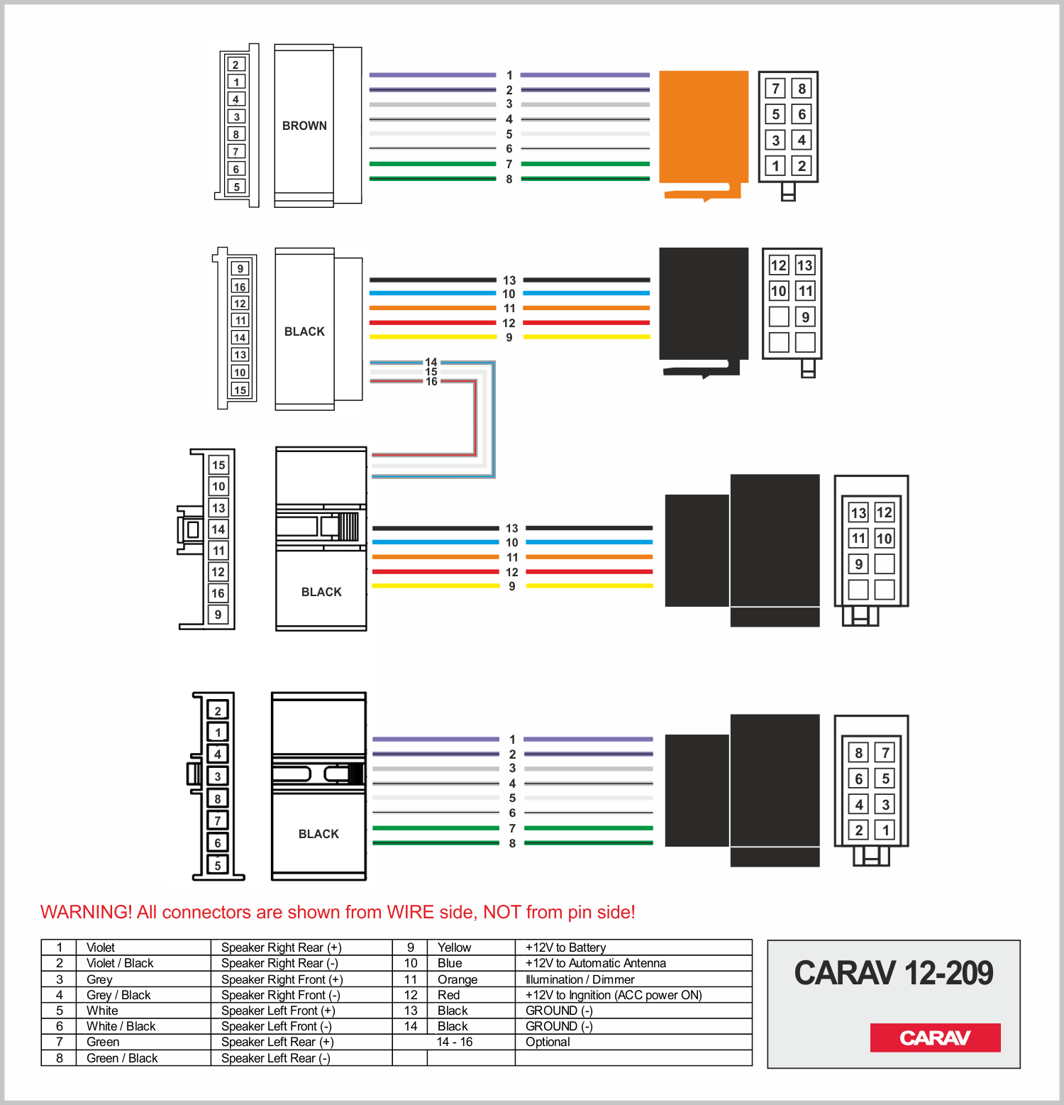 conector OEM (macho) + ISO (hembra) <---> CARAV <---> conector OEM (hembra) + ISO (macho)