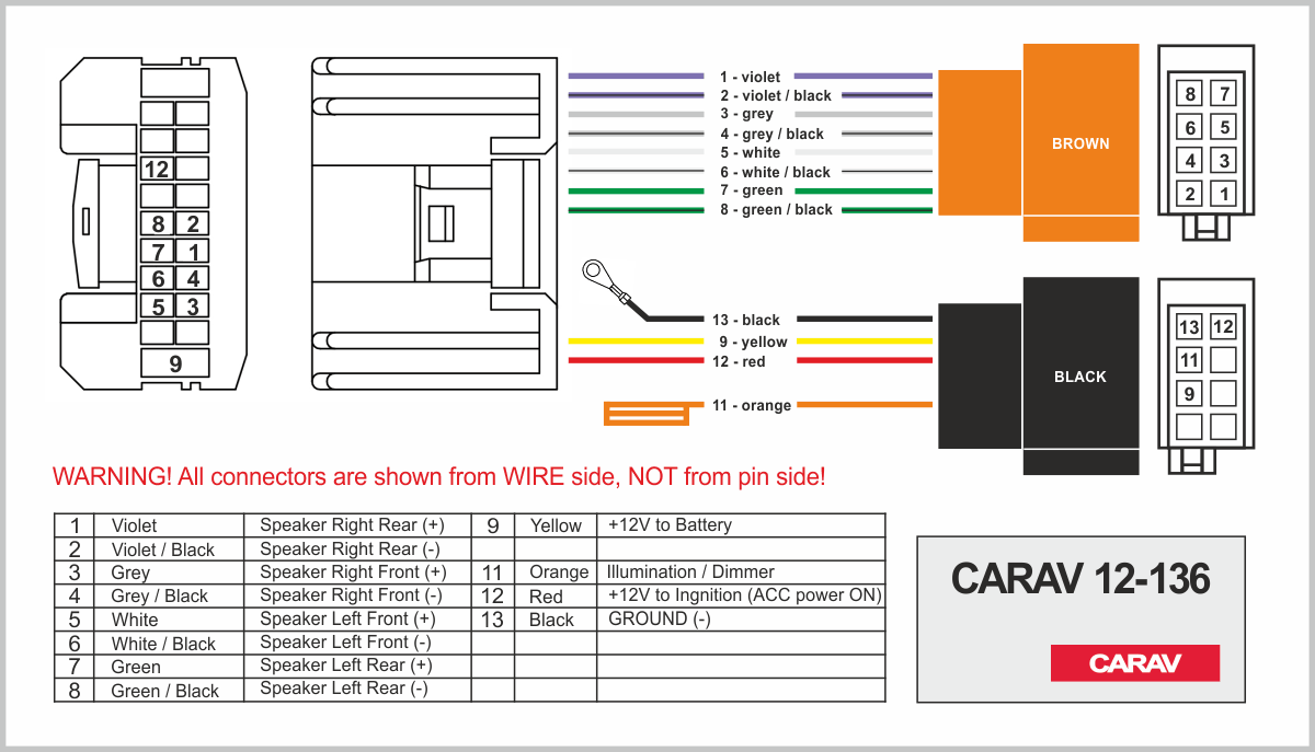 ISO (hembra) <---> CARAV <---> conector OEM (macho)